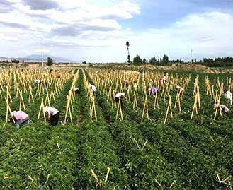 瓜州基地主要以生產(chǎn)加工型番茄為主,土壤肥沃、光照充足、晝夜溫差大、降雨量少、病蟲(chóng)害輕、水源充足。